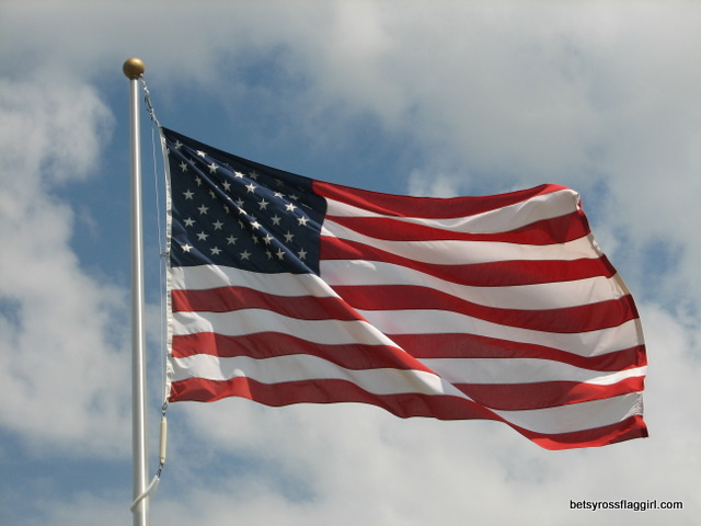 8X12' NYLON US FLAG W/ROPED HEADER. SEWN STRIPES & EMBROIDERED STARS