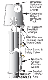 70'x10"x.250 internal halyard flagpole, not installed. Call for installation prices. 15x25' nylon US flag included.